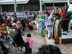 12月22日〜24日、芸術文化センター中ホールで行われる、兵庫県立ピッコロ劇団ファミリー劇場『飛んで孫悟空』のキャラクターが、ひと足早くアクタ西宮の円形デッキに登場!孫悟空や猪八戒たちと楽しく遊ぼう!