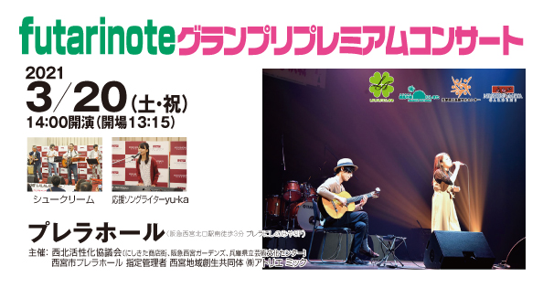 2019年度LALALAにしきたミュージシャンコンテストグランプリ受賞者futarinoteの記念コンサート開催!