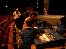 小ホールのバックヤードで照明さん、音響さんのお話を聞きました。